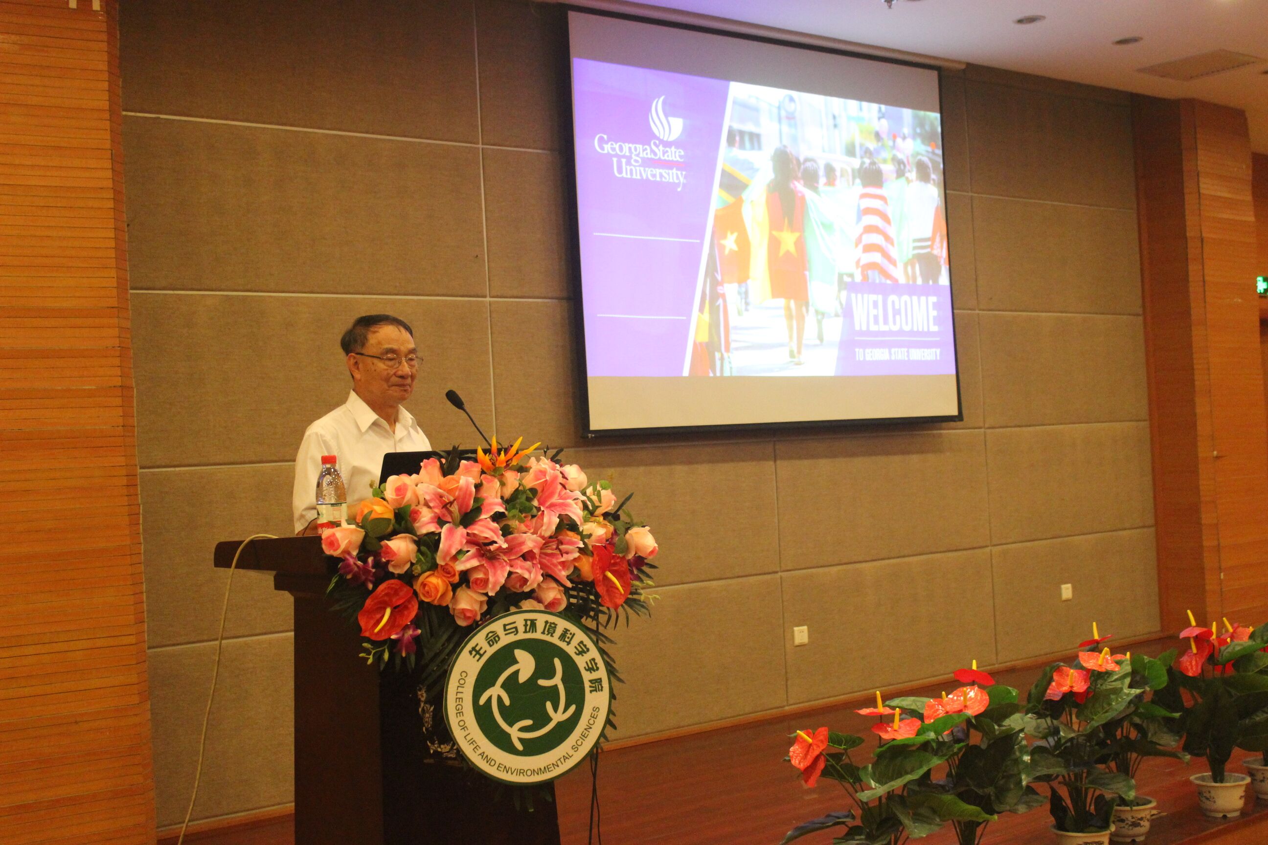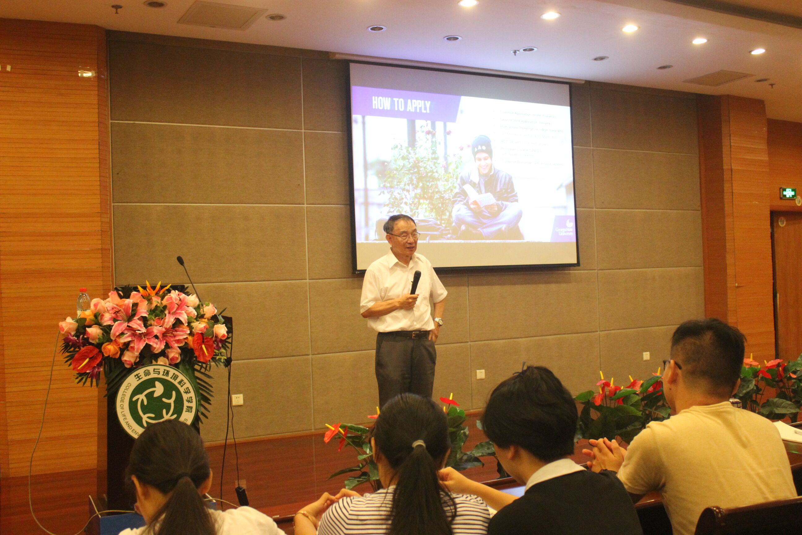 随后,于院长具体介绍了杭州师范大学以及电子竞技博彩 对赴海外留学的同学们提供资金支持和奖学金鼓励的文件,以此鼓励同学们拓宽眼界,多多关注留学信息。之后,由Phang-Cheng Tai教授对乔治亚州立大学进行了介绍,他先介绍了乔治亚州立大学的地理位置及环境,接着对所持有的项目如开设暑假班进行介绍:留学生可以在暑假参观走访乔治亚州立大学,熟悉并了解其具体建设。此外,他还表示乔治亚州立大学对我校本科生提供2+2留学模式,从而拿到双学位。最后,教授强调了要出去留学,必须拥有较好的雅思成绩,鼓励同学们学好英语,以便能更好地融入新环境。