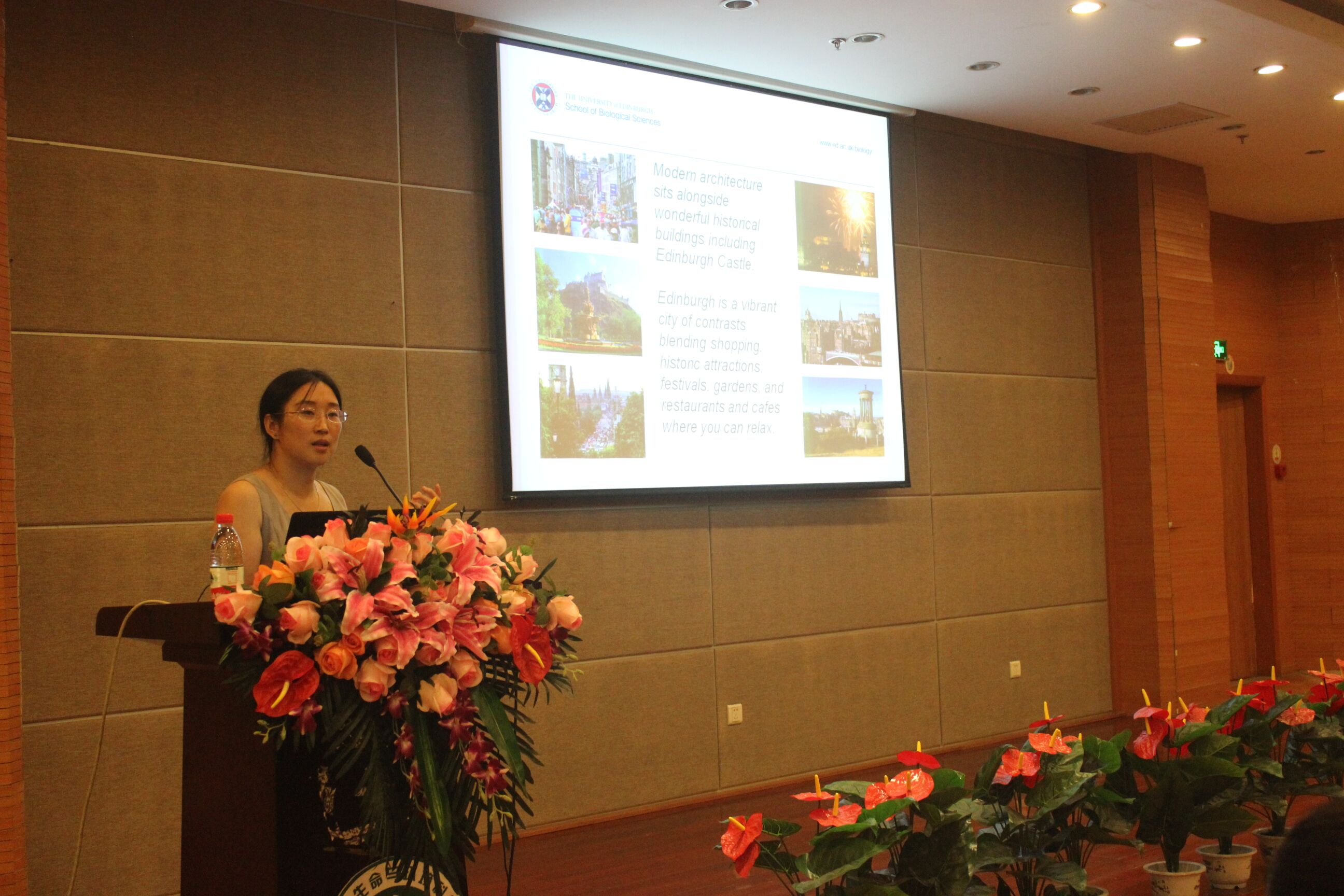 最后,由胡玉华教授对爱丁堡大学进行介绍宣传。爱丁堡大学位于英国苏格兰首府爱丁堡,是一所世界顶尖著名的公立综合研究型大学。胡教授介绍了苏格兰及爱丁堡的地理位置,建筑,以及拥有的悠久历史。随后她分别对攻读本科生和研究生的要求进行了讲解,告知同学们爱丁堡大学专业选择面广,课程开设理论与实验并重,注重小组合作。并且学校拥有先进的教学手段,给予同学们方便快捷的学习方式。同样,学校注重同学们的生活状况,设有专门的管理人员负责学生的学习生活,能给予同学们最舒适的学习生活环境。之后,胡教授热情回答了同学们的疑问,帮助同学们更好地更全面的了解爱丁堡大学。